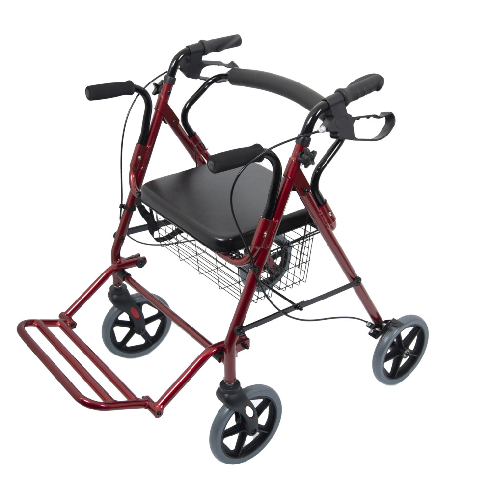 Este rollator y silla de ruedas (2 en 1) es muy práctico. El usuario puede utilizarlo como rollator. Dispone de frenos y bloqueo desde las empuñaduras. No es necesario levantar el andador para poder avanzar gracias a sus ruedas. Cuando el usuario lo necesite, puede cambiar el respaldo al otro lado y sentarse para que lo empujen. Dimensiones: