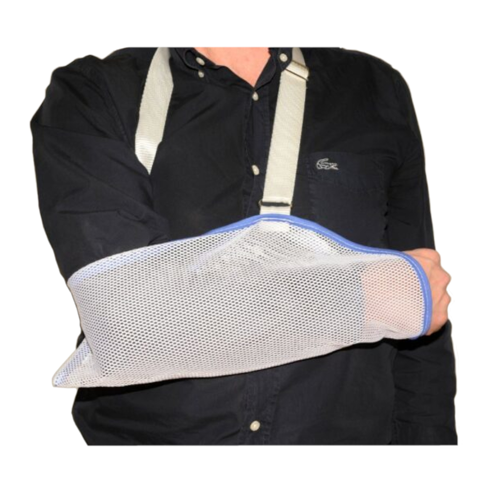 Este cabestrillo de rejilla permite la descarga del hombro y la clavícula. Indicado para procesos inflamatorios que requieran inmovilización, fracturas de clavícula y húmero, sujeción de los brazos escayolados, esguinces y luxaciones del miembro superior. Características: