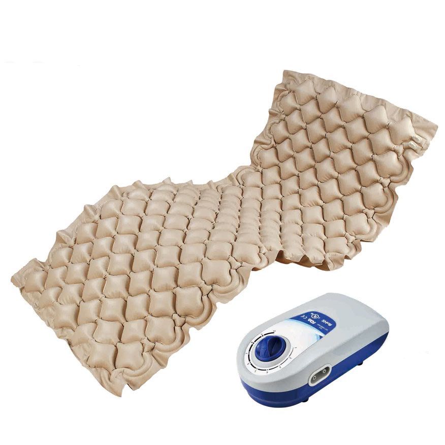 Colchón antiescaras de aire alternante con compresor. Sus celdas se hinchan y deshinchan alternativamente activando
