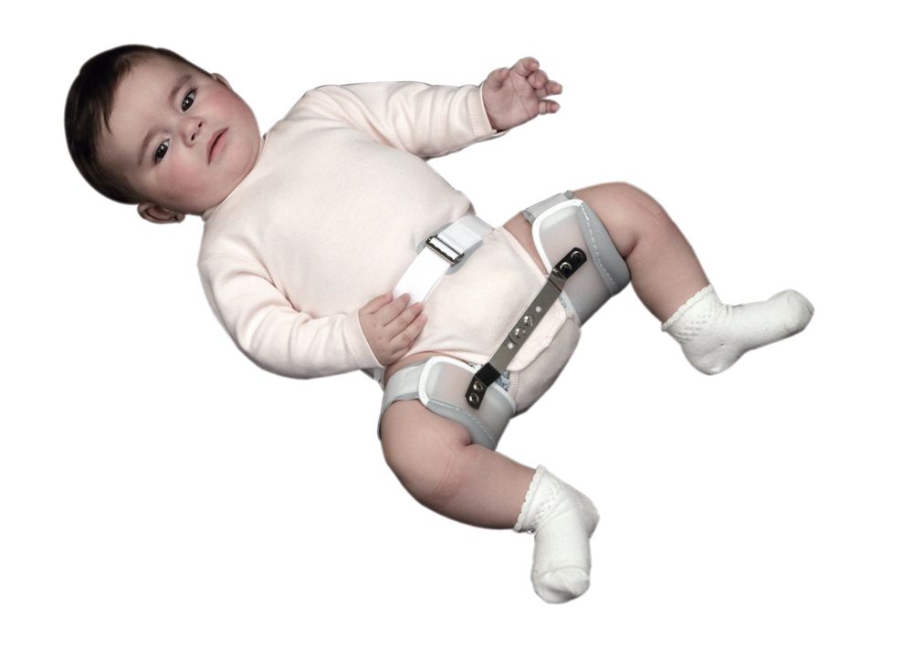 FÉRULA DENNIS BROWN. Características: Ortesis que ayuda a los niños a mantener la cadera en su posición. Cómoda y ligera. Efectos Mantener la cadera en abducción. Indicaciones Subluxación y luxación congénita de cadera. Displasia de cadera. • Polietileno acolchado en los bordes del soporte del muslo. • Estructura de acero inoxidable. • Color blanco.