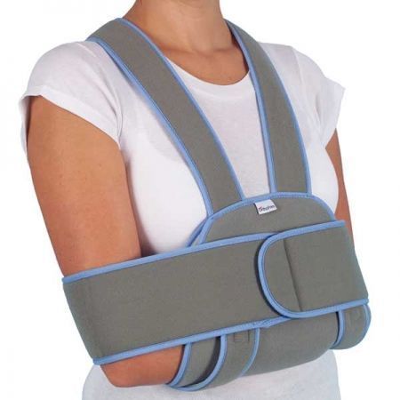 Características • Ortesis de inmovilización de miembro superior, fabricada en velour suave al tacto y confortable. • Cuenta con tirantes que se cruzan en la espalda: aumentan la sujeción y el confort y permiten el descanso de la articulación escapulo-humeral. • Fijación fácil y segura gracias a sus cierres de microgancho. • Cuenta con una banda horizontal, de uso opcional, para inmovilización del hombro. Indicaciones Fractura o dislocación de codo y/u hombro. Postoperatorio.