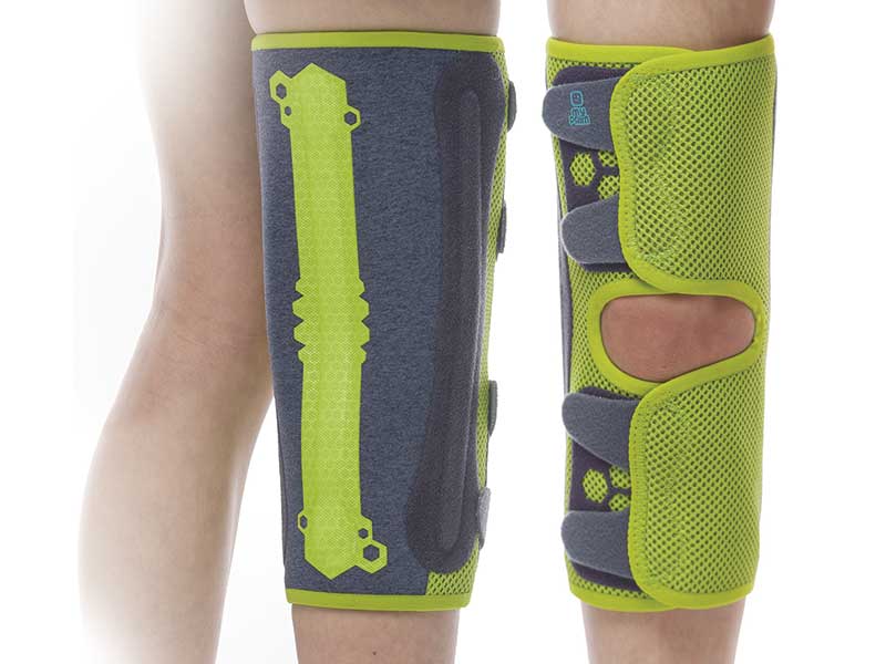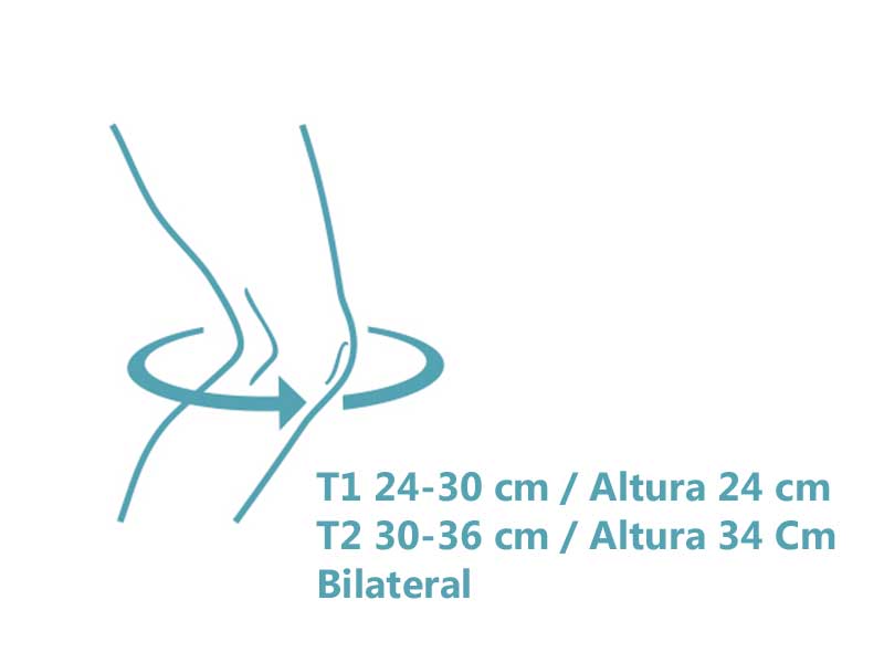 Inmoviliza la pierna en extensión gracias a las dos pletinas laterales y a la pletina posterior, conformadas ergonómicamente. Panel posterior de tejido elástico para mejorar la adaptación poplítea. Su textura interna evita el deslizamiento. Rótula libre para mayor comodidad. Bilateral.