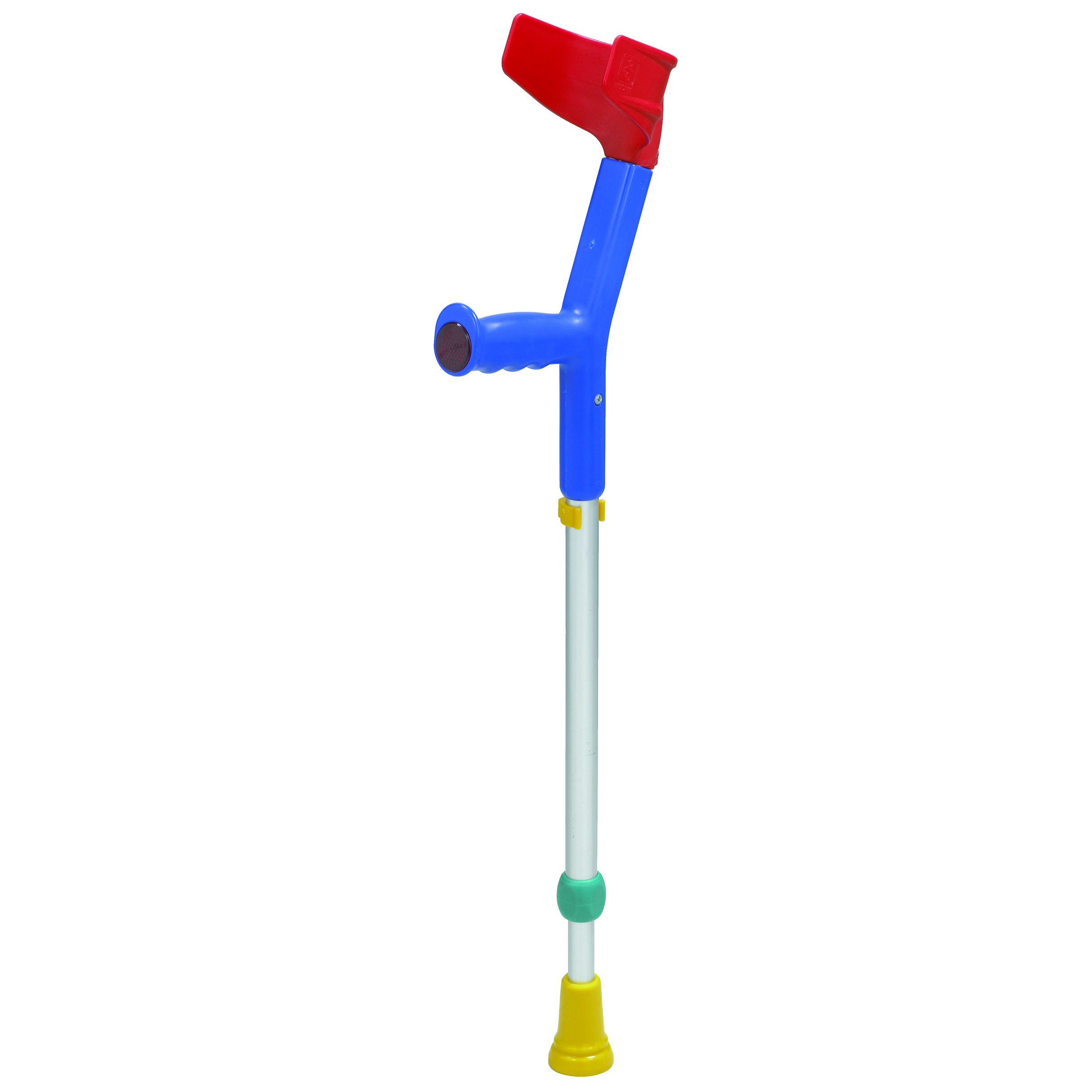 Bastón infantil de aluminio con mango ergonómico y sistema reflector. Ajustable con 10 niveles de altura y 3 niveles entre empuñadura – antebrazo. Sistema de seguridad “antipistoneo”. Dimensiones:
