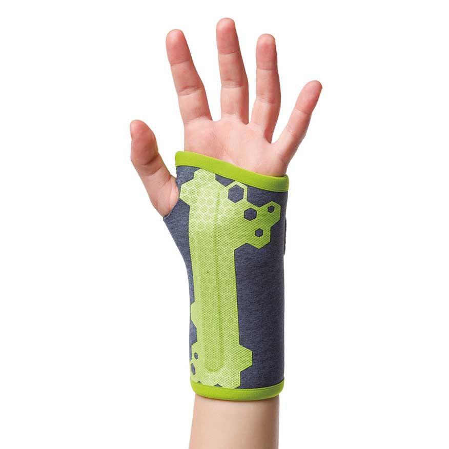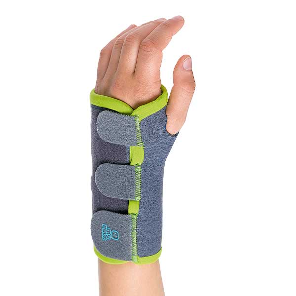 Características • Ortesis pasiva de muñeca pediátrica confeccionada con tejido elástico transpirable acolchado y tecnología sin costuras “Friendly Skin Technology” para incrementar la comodidad de los más pequeños. • Con pletina palmar anatómica de aluminio maleable conformado, que limita la flexión palmar inmovilizando la articulación de la muñeca. • Una pletina dorsal aporta la rigidez necesaria para mejorar la estabilización de la articulación. • Cierres microgancho 3 fases para el ajuste fácil y seguro. • Diseñada con colores llamativos y formas divertidas. • Se puede colocar accesorio de pulgar si se requiere inmovilización de pulgar. Indicaciones Postoperatoria, Síndrome del túnel carpiano, lesión neurológica, fractura o fisura, enfermedad degenerativa.