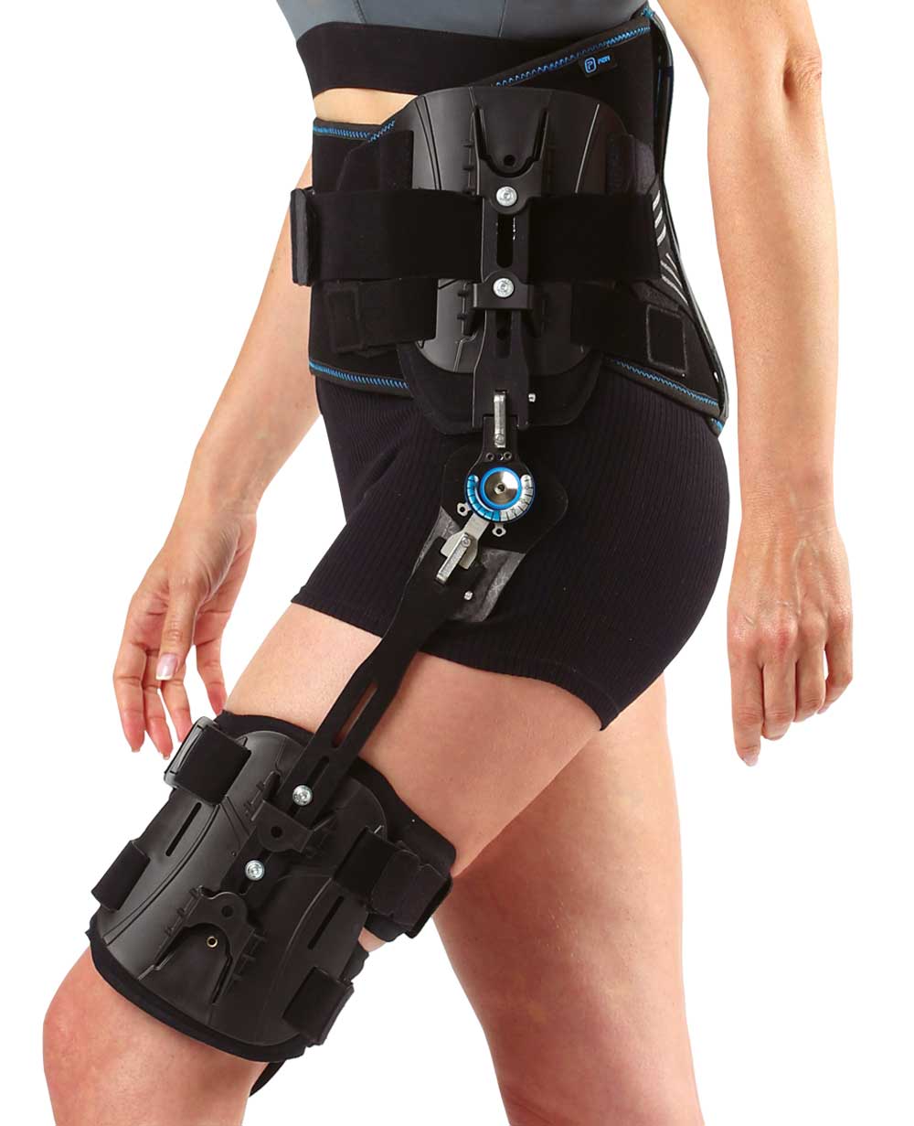 Indicaciones postoperatorias de cadera. Reemplazo o reparación de prótesis total de cadera. Luxación de cadera. Fracturas asociadas con prótesis de cadera. Inestabilidad de la articulación de la cadera. Osteoporosis. Aflojamiento de endoprótesis de cadera. Coxartrosis moderada a grave. Rango de circunferencia de cintura: 60 a 140 cm Rango de circunferencia de muslo: 40 a 65 cm Talla única · bilateral