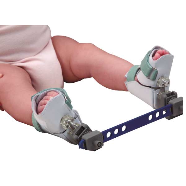 Características • Ortesis para menores de 3 años que permite un rápido y exacto ajuste de la rotación correctora de ambos pies (llave de regulación incluida). • Dicho ajuste rotacional es legible en una escala graduada. • Permite la adaptación del zapato a cada una de las plataformas, o bien la colocación directa de la ortesis BEBAX, pudiendo así actuar sobre las malformaciones del antepié. • Puede ser colocada o retirada sin perder el ajuste establecido por el prescriptor. • Se suministra con dos barras separadoras y con elementos necesarios para su adaptación a las botas convencionales u ortesis BEBAX. • Las ortesis BEBAX no van incluidas. Indicaciones Corrección del sistema de rotación tibial, coxa anteversa. Pie zambo (combinando la barra con la ortesis BEBAX). Postoperatorio. Tratamiento de rotaciones tibiales patológicas. Pie equino-varo adquirido (poliomielitis, parálisis postinyección, etc.). Subluxación y luxación de cadera infantil.
