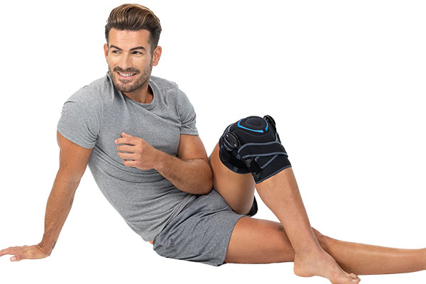 Oretsis estabilizadora de rodilla confeccionada en tejido elástico-comprensivo tricapa ,100% transpirable, con rodete rotuliano anatómico, sistema de ajuste versátil para la individualización del tratamiento, articulaciones policéntricas dinámicas con sistema ROM.
