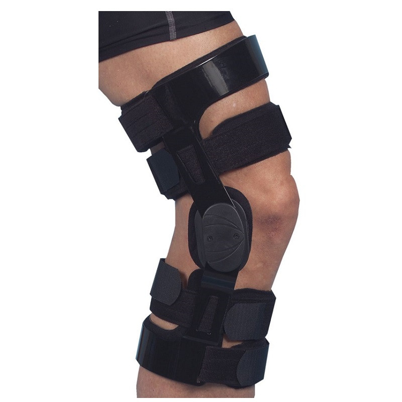 Ortesis con marco rígido metálico recubierta con foam suave para su uso más confortable, se ajusta al muslo y a la pierna mediante cuatro cinchas con velcro dejando libre la rodilla. Guarda lado : R/L