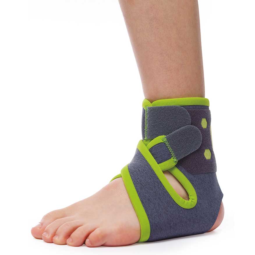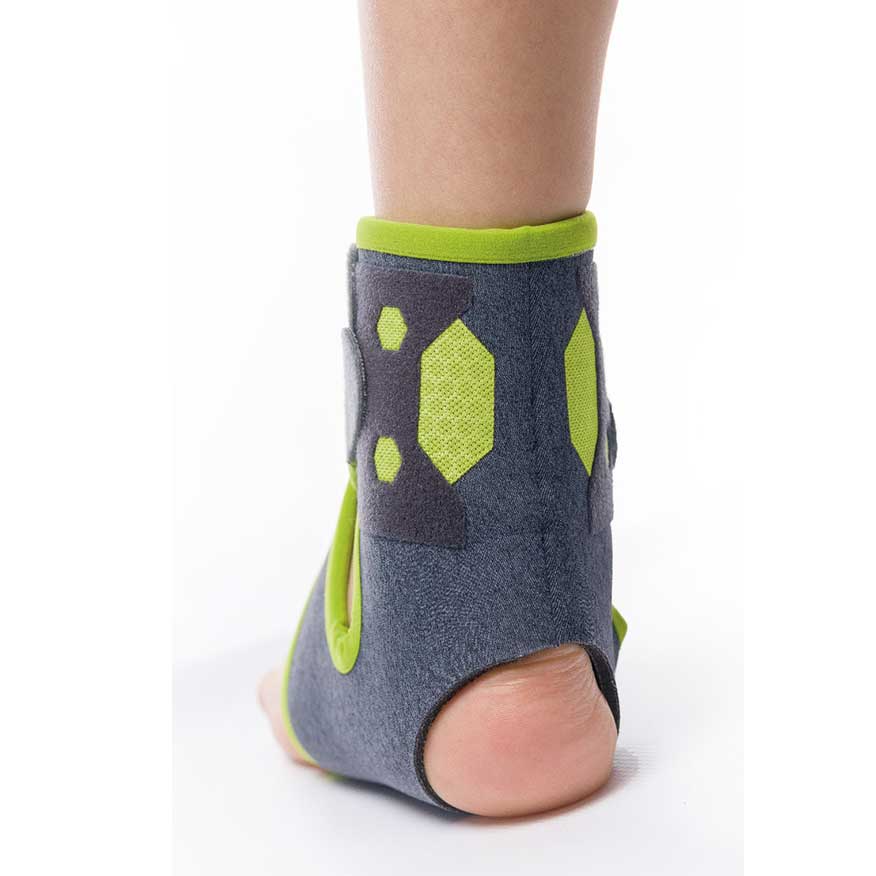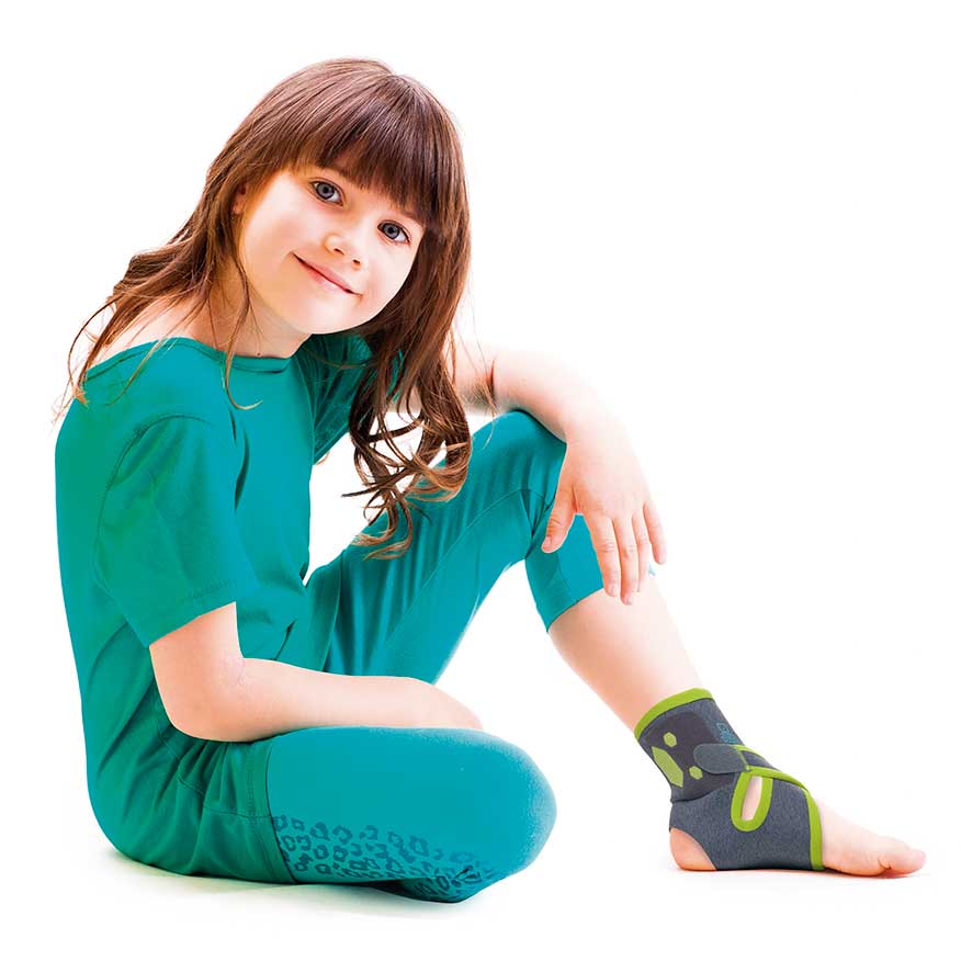 Ortesis de tobillo pediátrica confeccionada con tejido elástico transpirable acolchado y tecnología sin costuras para incrementar la comodidad de los más pequeños. Sus cintas de cierre, cruzadas por la parte anterior, estabilizan y mejoran el control mediolateral del tobillo, regulando la compresión según necesidades. Con cierres micro-gancho posteriores que adaptan y fijan la ortesis con seguridad. Talón abierto para mayor confort. Indicaciones: Esguince del tobillo leve y moderado. Tendinitis.